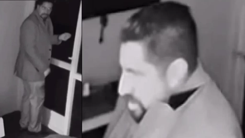 Las cámaras de vigilancia captaron al hombre tocándose de manera inapropiada mientras había personas en la casa. Cuando los habitantes vieron al hombre, éste huyó de la escena.