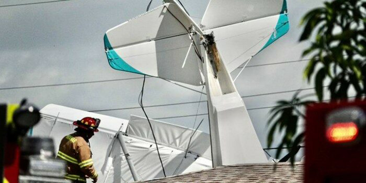 Las autoridades locales confirmaron que el pequeño avión se estrelló contra el techo de una casa en Jamaica Drive, al sur del aeropuerto North Perry en Pembroke Pines.