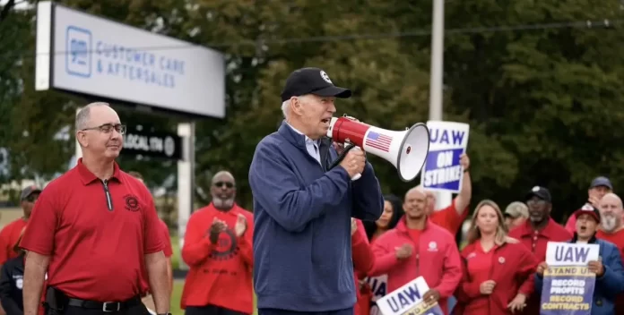 El presidente de Estados Unidos, Joe Biden, respaldó a los trabajadores del sector automovilístico en huelga en Michigan durante una visita a su piquete, la primera vez que realiza un presidente de Estados Unidos en ejercicio.