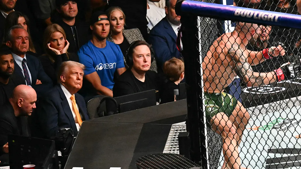 Cuando el presidente entró al recinto de Miami acompañado por White, compartió un abrazo con el presentador de podcast Joe Rogan. Musk y Rogan se sentaron al lado de Trump.
