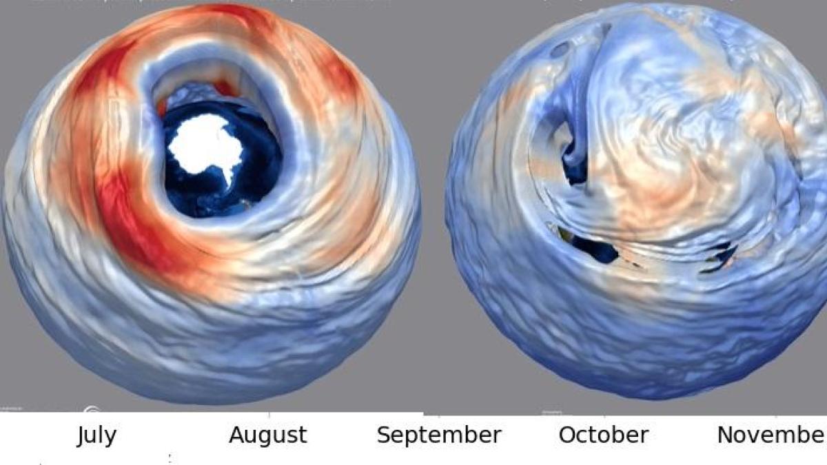 Copernicus añadió que, en comparación con los últimos años, en 2025 el agujero presentó niveles mínimos de ozono superiores a la media y un déficit de masa más bajo, lo que confirma una mayor concentración de ozono en la estratosfera antártica.