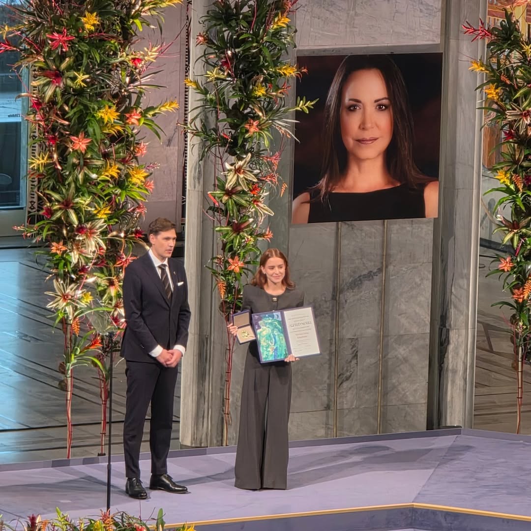 Machado, galardonada por su “valentía civil y compromiso con una transición pacífica”, no asistió a la ceremonia debido a razones de seguridad, pese a las expectativas de que estaría presente. En su lugar, Sosa subió al escenario para recoger el reconocimiento, acompañada por representantes de la organización del Nobel y miembros de la comunidad internacional.