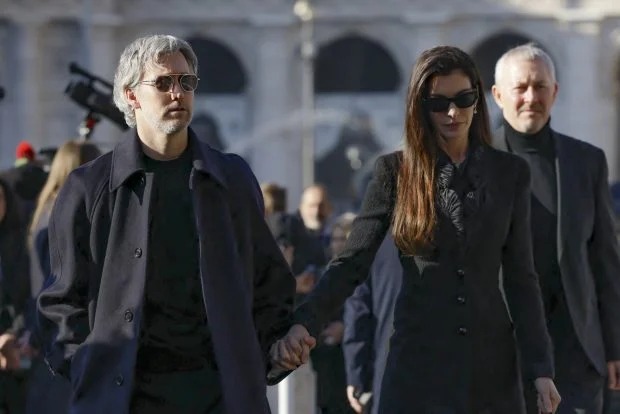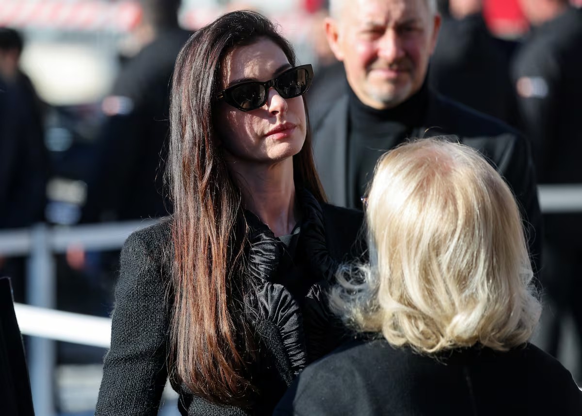 Una de las presencias más conmovedoras fue la de Anne Hathaway, quien acudió acompañada por su marido, Adam Shulman. La protagonista de El diablo viste de Prada no solo fue una de sus musas más fieles, sino una amiga íntima durante dos décadas.