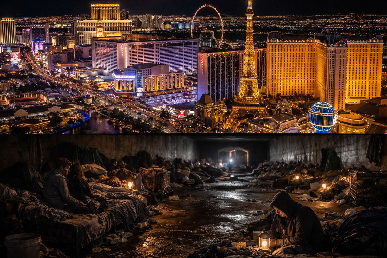 Bajo el brillo de los casinos y hoteles de Las Vegas existe una realidad poco visible: una extensa red de túneles pluviales conocida como la “ciudad subterránea”, donde se estima que viven cerca de 1.500 personas sin hogar. Estos pasajes, diseñados originalmente para drenar el agua de lluvia y prevenir inundaciones, se han convertido con los años en refugio improvisado para quienes no tienen acceso a una vivienda.