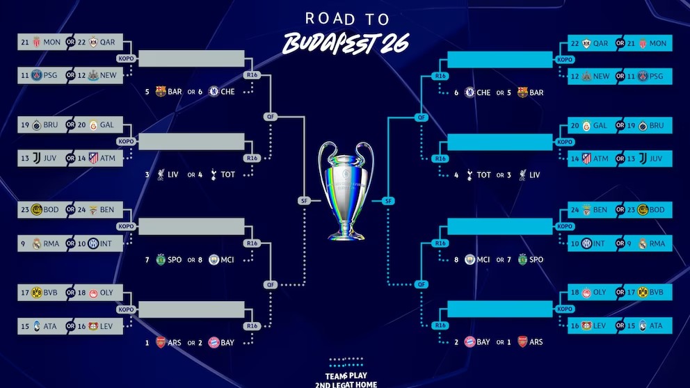 La nueva Fase Liga de la UEFA Champions League cerró con un dramatismo total. Tras una jornada de 18 partidos simultáneos, el cuadro para la fase de eliminación directa ha quedado definido en Nyon, Suiza. Mientras ocho gigantes ya descansan en octavos, otros 16 deberán batirse a todo o nada en febrero.