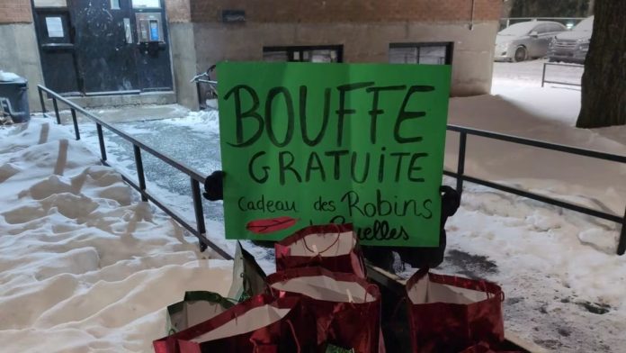 Una tienda de alimentos saludables de la cadena Rachelle Béry fue el escenario de una inusual acción de protesta el pasado martes por la noche. Un grupo de aproximadamente 60 personas, bajo la organización activista “Robins des Ruelles” (Robins de los callejones), ingresó al establecimiento vestidos con elementos alusivos al personaje de Robin Hood para sustraer productos y distribuirlos posteriormente de manera gratuita.