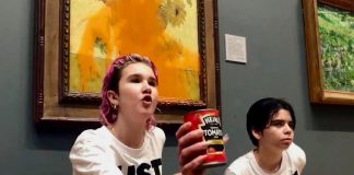Dos activistas ecologistas han arrojado este viernes sopa de tomate sobre el cuadro 'Los Girasoles' de Vicent Van Gogh, exhibido en la National Gallery...